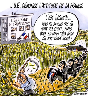 Mercredi – José Bové, fondateur du syndicat Confédération paysanne, sortait de la gendarmerie de Millau après plusieurs heures en garde à vue pour une affaire de destruction d’une parcelle de maïs transgénique.